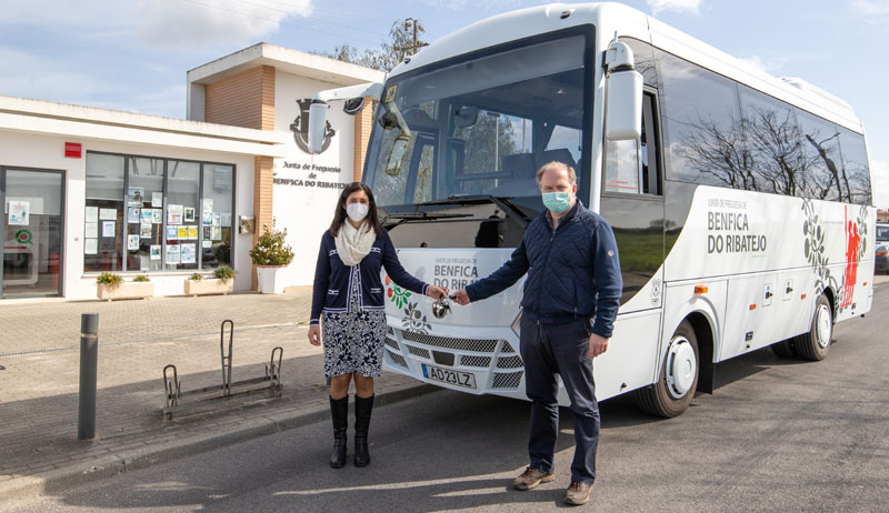 O presidente da Câmara Municipal de Almeirim, Pedro Ribeiro, entregou esta terça-feira, 2 de março, à presidente da Junta de Benfica do Ribatejo, Cândida Lopes, as chaves de um novo autocarro que vai ficar ao serviço desta freguesia.