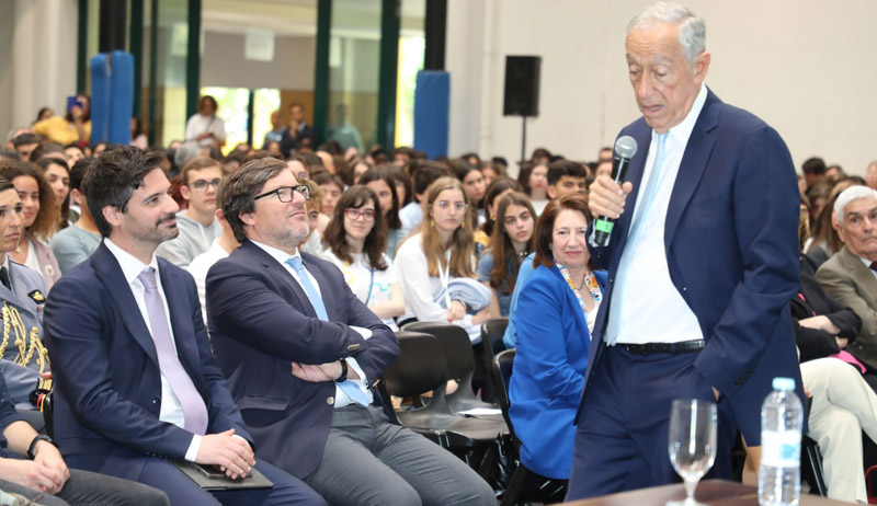 Cerca de seis centenas de alunos, professores e convidados da Escola Secundária Sá da Bandeira, em Santarém, assistiram na manhã desta sexta-feira, 12 de abril, a uma “aula” do Presidente da República, Marcelo Rebelo de Sousa.